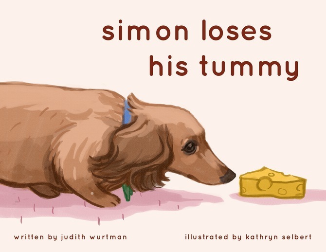 Simon is a long-haired dachshund who loves to eat cheese and hates to exercise. Susie tries to feed him diet dog food, but Simon hates it! When Susie goes to summer camp, Simon stays with Susie’s friend, Annie. Simon fools Annie into feeding him lots of cheese and letting him take naps instead of walks. But one day, Simon wakes up and finds his tummy gone! There is a furry beach ball where his tummy used to be.